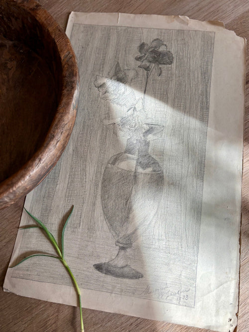 Vintage Textured Brown Stoneware Vessel